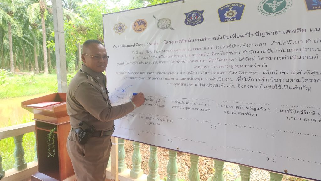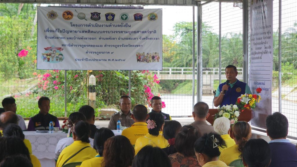 พร้อมด้วยข้าราชการตำรวจ สภ.คลองแงะ, น.ส.ต.ฝึกปฏิบัติราชการ ร่วมพิธีเปิดโครงการดำเนินงานตำบลยั่งยืนเพื่อแก้ไขปัญหายาเสพติดฯ